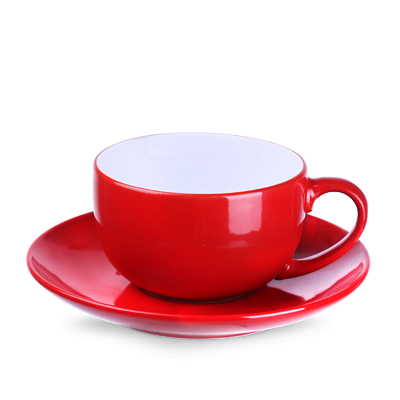 Obła filiżanka reklamowa z kolorowym szkliwem na zewnątrz i białym wnętrzem. Fason dostępny w wielu wersjach kolorystycznych.